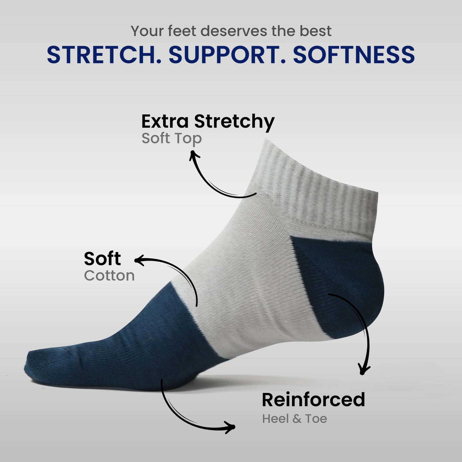 Men's cotton two toe ankle length socks (Pack of 3 pair)