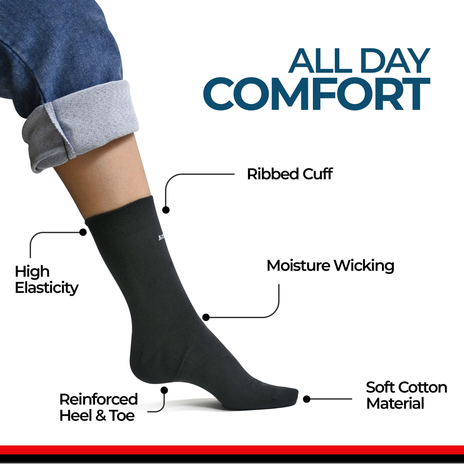 Men's cotton Crew ankle length socks (Pack of 5 pair)