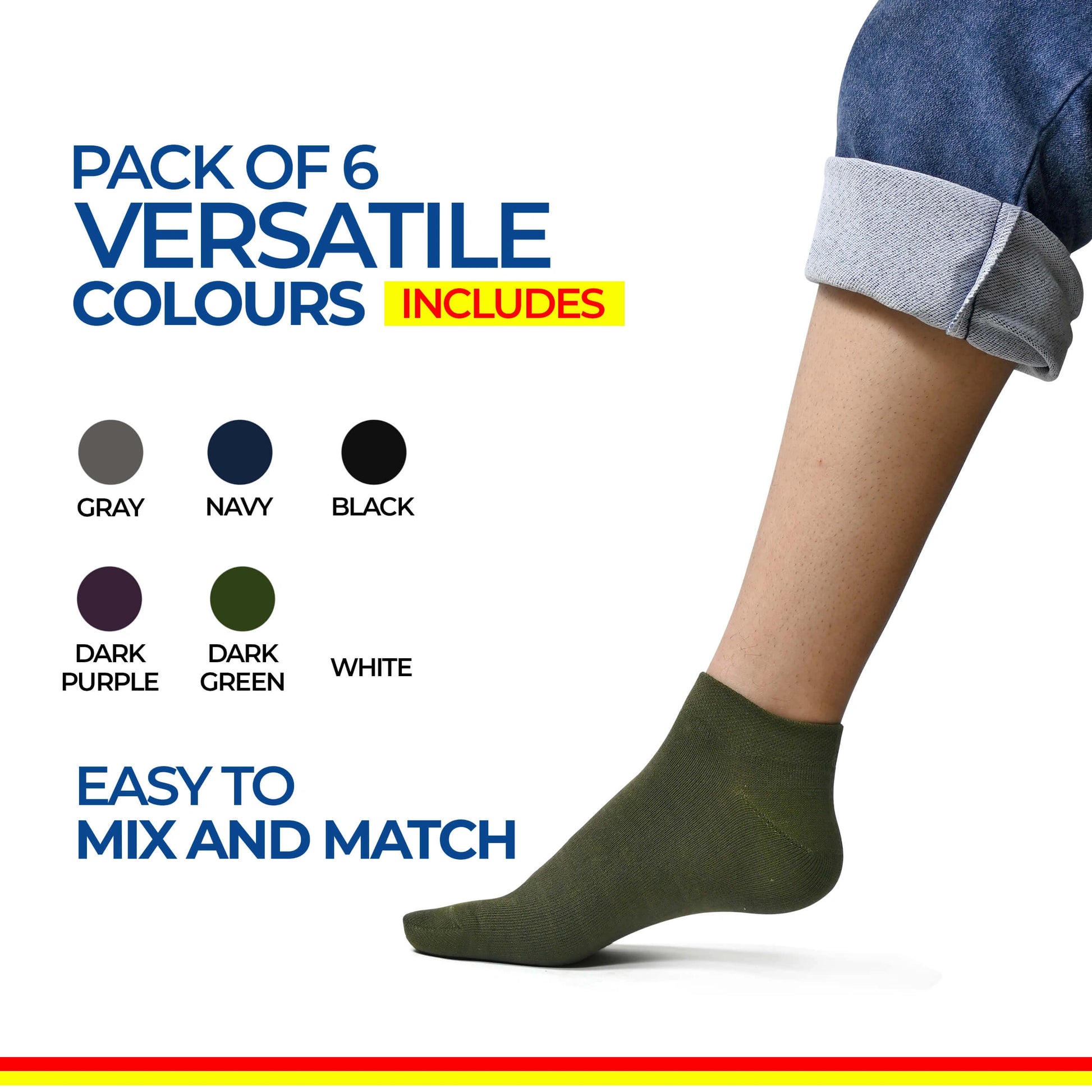 Men's cotton plain low cut ankle length socks (Pack of 6 pair)