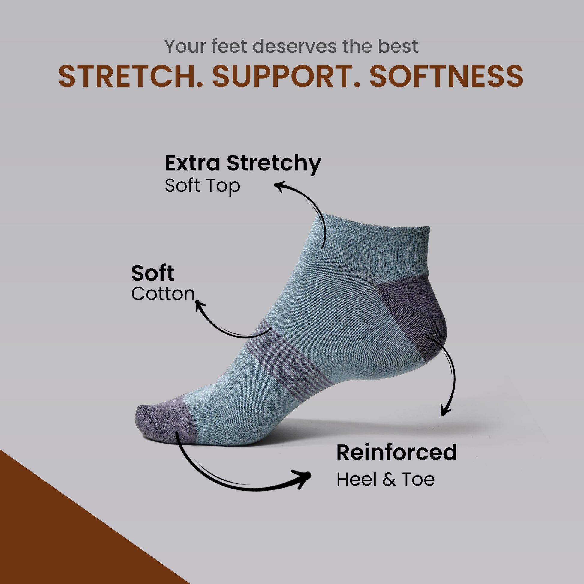 Men's Cotton Low-Cut Ankle Length socks Extra Stretchy & Soft (Pack of 4 Pairs)