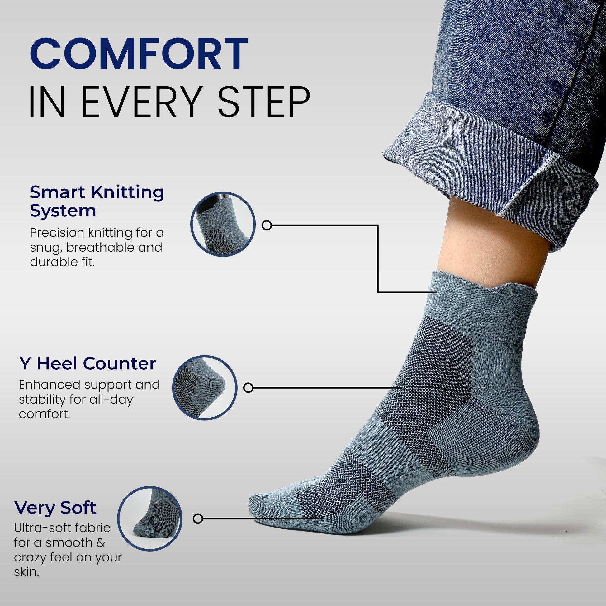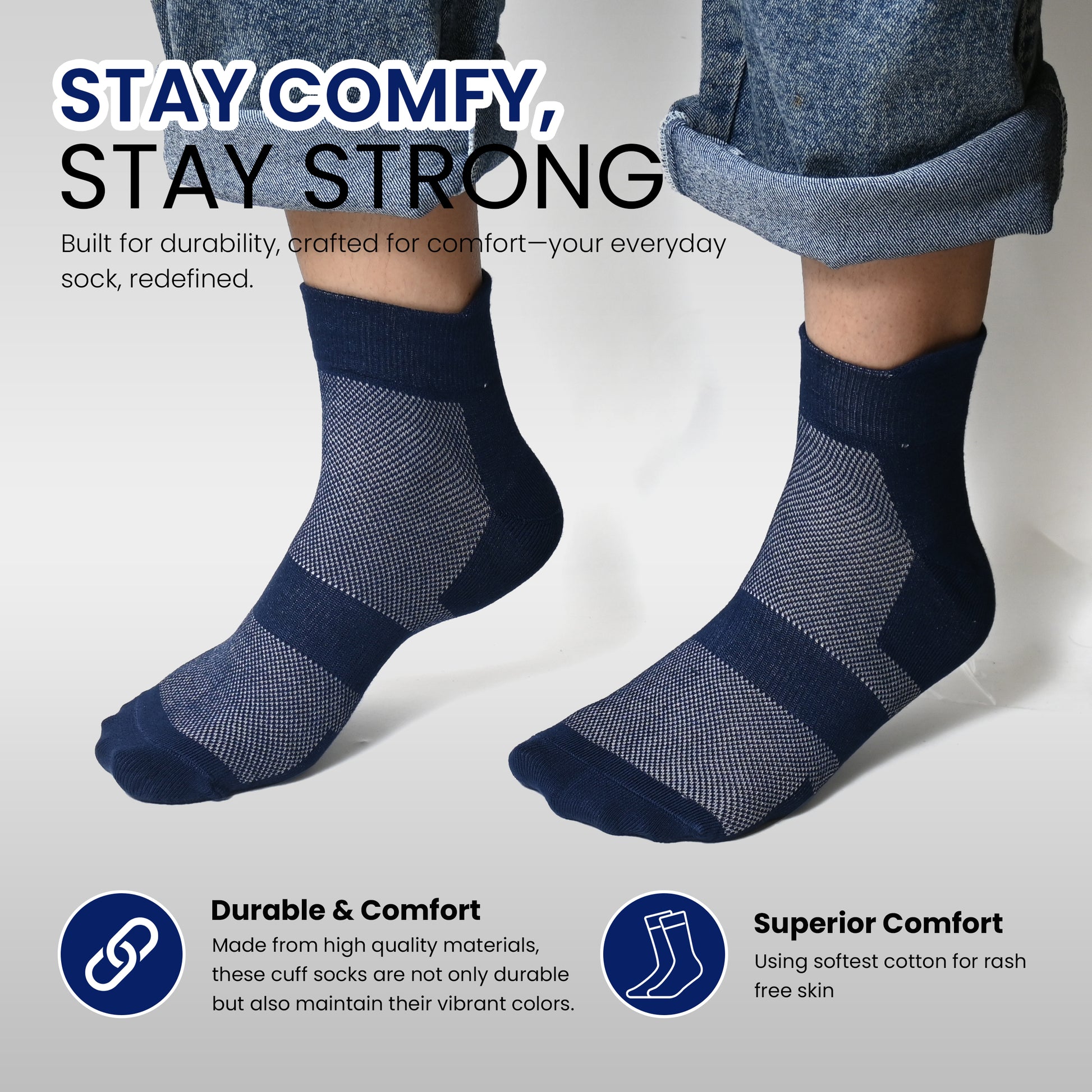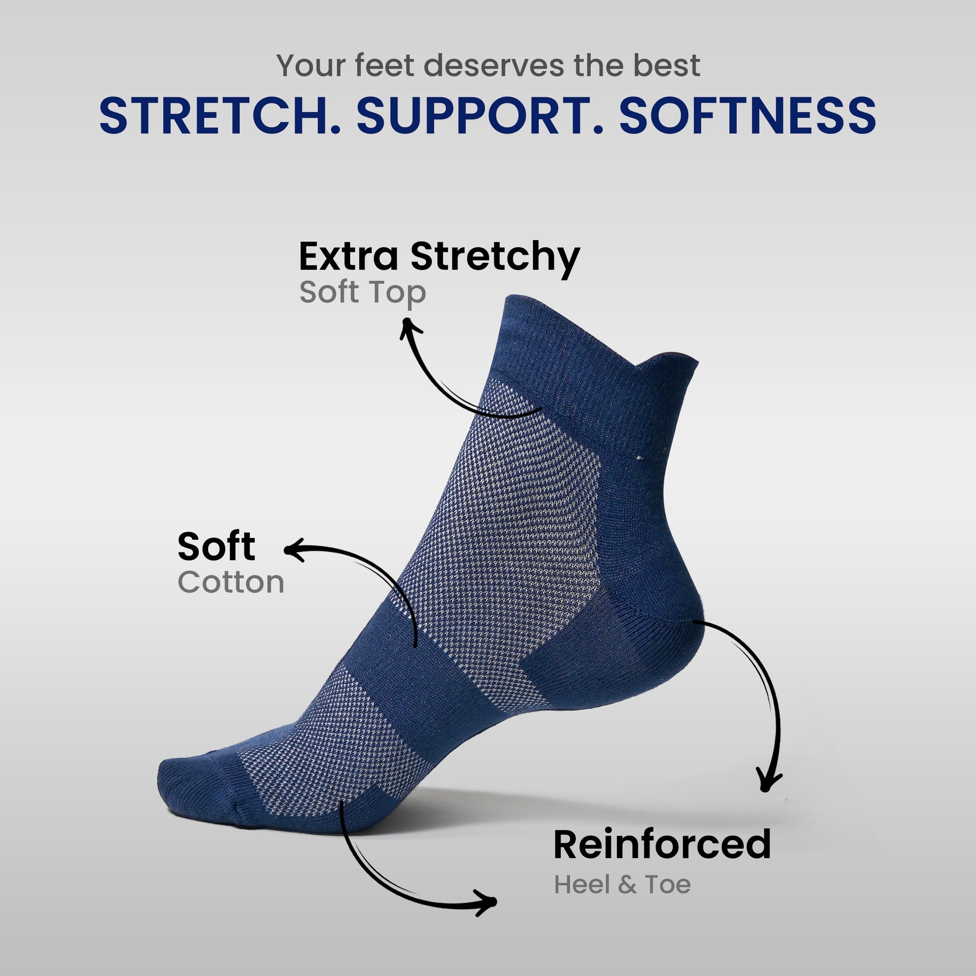 Men's cotton net ankle length socks stay comfy & stay strong (Pack of 3 pair)