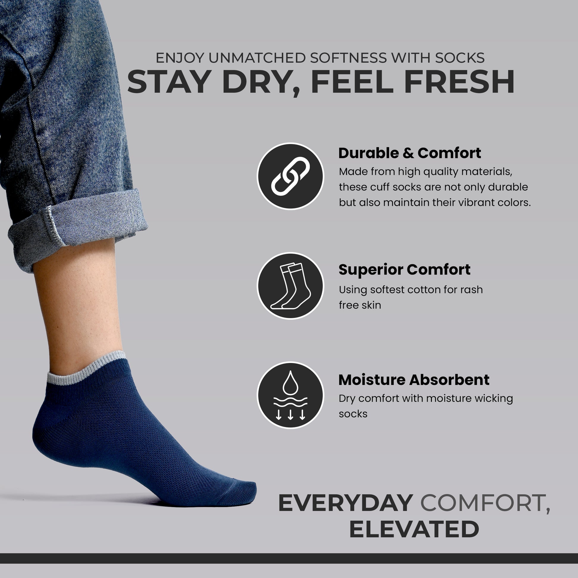 Men's Cotton Low-Cut Net Ankle-Length Socks – Durable & Comfortable (Pack of 4 Pairs)